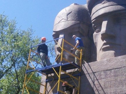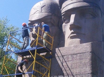 Активисты смогли повалить ограждение, которым был обнесен памятник, и смонтировав строительные леса, приступили к уничтожению монумента. Среди активистов был замечен комбат батальона ОУН Николай Коханивский. Сотрудники полиции присутствуют на сносе памятника, однако в ситуацию не вмешиваются - снимают все происходящее на камеру.