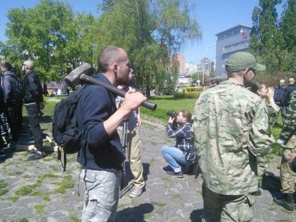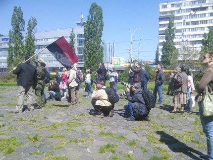 В Киеве возле станции метро Лыбедская члены Организации украинских националистов совместно с активистами "Азова" пытаются снести памятник чекистам.