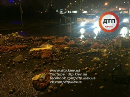 Виновник ДТП раскрыл прицеп с овощами и остановился через 250 метров. В результате аварии обошлось без тяжелых травм.