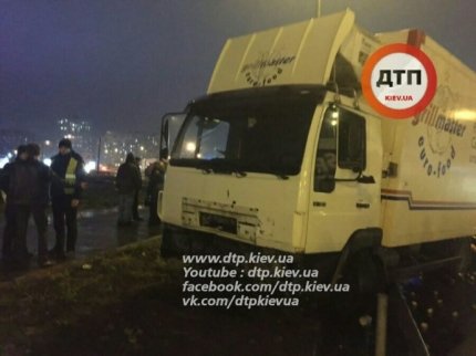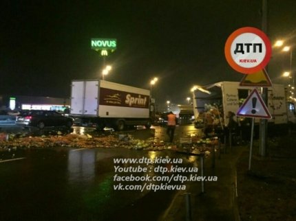 В Киеве произошло масштабное дорожно-транспортное происшествие с участием двух грузовиков.