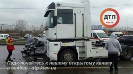 В пятницу, 9 декабря, на Дарницком шоссе в Киеве произошло крупное дорожно-транспортное происшествие с участием фуры и легкового автомобиля.