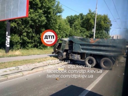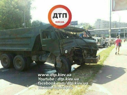 В Киеве 16 июля на оживленном участке недалеко от станции метро «Лыбедская», возле улицы Лебедева-Кумача, произошло дорожно-транспортное происшествие: грузовик Камаз потерял управление, врезался в маршрутку и отбросил ее на 30 метров.