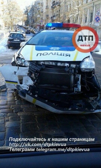 В центре Киева, на улице Богдана Хмельницкого водитель Chevrolet проехал на красный сигнал светофора и спровоцировал ДТП, в котором серьезно пострадала машина патрульной полиции.