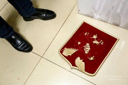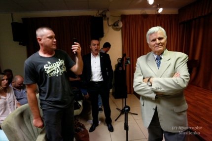 На презентацию книги прорвались около 50 активистов во главе с экс-нардепом от «Свободы» Игорем Мирошниченко, и устроили небольшой погром. В частности, они сорвали российские триколоры, а некоторые российские флаги зарисовали баллончиками и разбили герб РФ.
