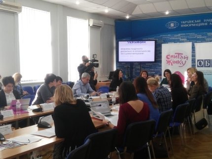 Были зачитаны результаты исследований украинских СМИ, которые мониторили телеканалы, новости и политические ток-шоу. По результатам этих исследований стало известно, что в украинских новостях женщины упоминаются в три раза реже мужчины. Также по данным, женщин очень редко приглашают в качестве гостей в студии социально-политических ток-шоу на телеканалах.
