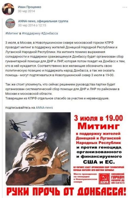 организовывал "народные митинги" в Крыму, Донбассе и по всей территории так называемой "Новороссии";