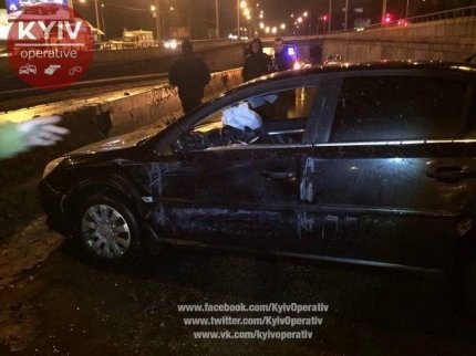 Очевидцы происшествия отмечают, что Opel на большой скорости ехал по улице Елены Телиги, и у станции метро "Дорогожичи" въехал в знак и отбойник, после чего и перевернулся. Водители других транспортных средств помогли перевернуть автомобиль на колёса.