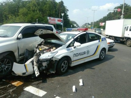 Авария произошла на регулируемом перекрестке в районе Большой Кольцевой и ул. Кондратюка, недалеко от площади Шевченко. Патрульная Toyota Prius столкнулась с Toyota Land Cruiser. Патрульный автомобиль сильно поврежден в районе бампера, у внедорожника – повреждения менее значительные.