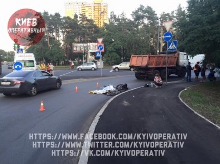 «Водитель КамАЗа ехал со стороны Гостомеля в сторону Минского шоссе и на повороте в сторону площади Шевченко под задние колеса грузовика влетел велосипедист, который ехал попутно по тротуару», — говорится в сообщении.