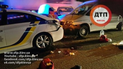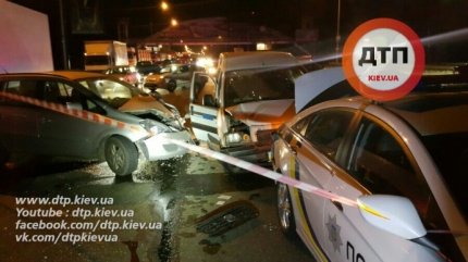 ДТП произошло на Столичном шоссе: Opel протаранил Fiat, который, в свою очередь, придавил к Hundai двух сотрудников полиции.