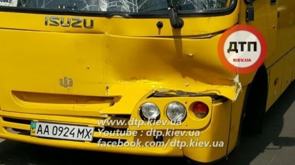 Столкновение произошло на Драйзера 14, на Троещине, где водитель автомобиля Renault Kangoo остановился на светофоре. За ним встала маршрутка. Водитель едущего позади маршрутного автобуса Богдан не справился с управлением и врезался в маршрутку, которая догнала Рено.