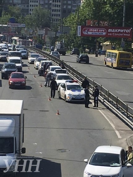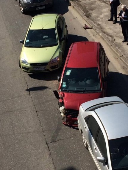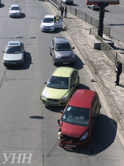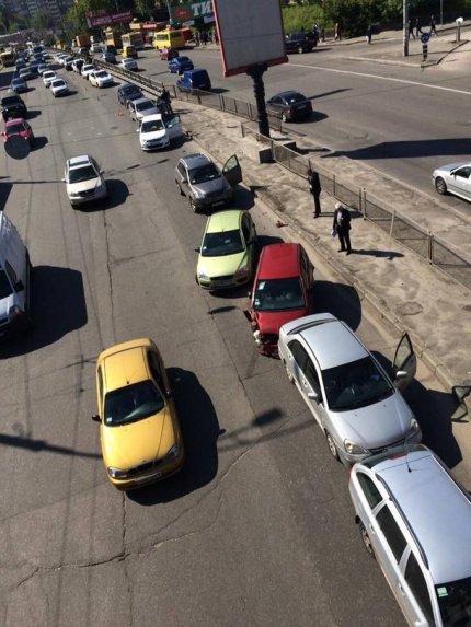 В Киеве на улице Гетьмана в Соломенском районе произошло масштабное дорожно-транспортное происшествие - столкнулись тринадцать авто.