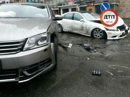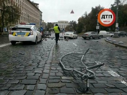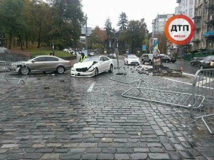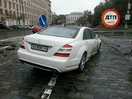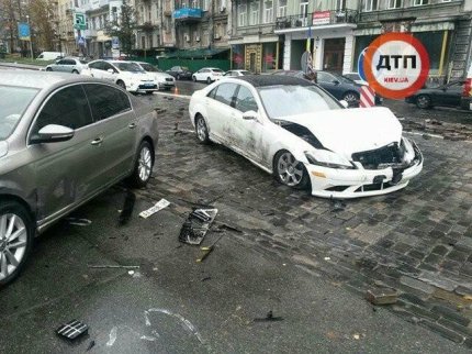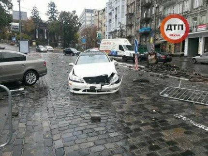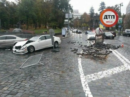 В центре Киева, на улице Грушевского возле стадиона «Динамо», водитель автомобиля Mersedes не справился с управлением и врезался в памятник герою Небесной сотни Михаилу Жизневскому.
