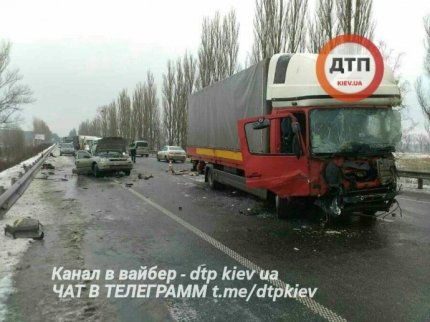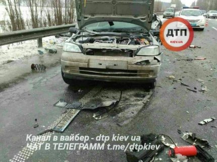 "Первая жертва гололеда. Opel двигался в сторону Киева, пошел на обгон грузовой машины. Его раскрутило, после чего авто ударилось в отбойник, с отбойника его кинуло на Mercedes", — говорится в сообщении.