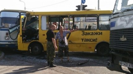 По словам очевидцев, после этого произошло еще одно столкновение - рейсовый автобус "Мариуполь-Луговое" ударил маршрутку в лоб.