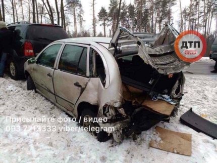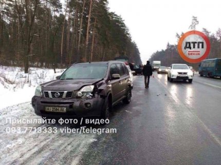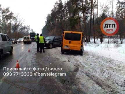 Под Киевом на Гостомельском шоссе произошла масштабная авария, в которой разбилось сразу пять автомобилей.
