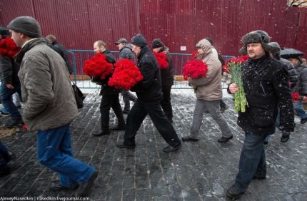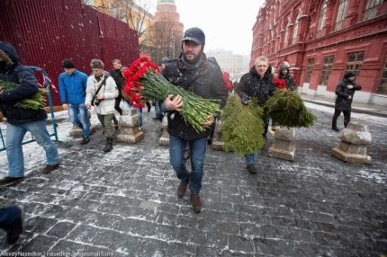 «Сегодня утром, в то время когда обычные москвичи сладко и беспечно потягивались в своих кроватях в предвкушении кофе с круассаном, другие, несмотря на мокрый снег, стягивались к Красной площади. Ровно 63 года назад, как известно, умер Сталин и в честь этой даты уже несколько лет проводится акция под названием "Две гвоздики для товарища Сталина", — написал блогер.