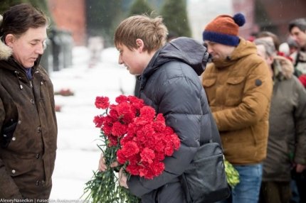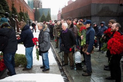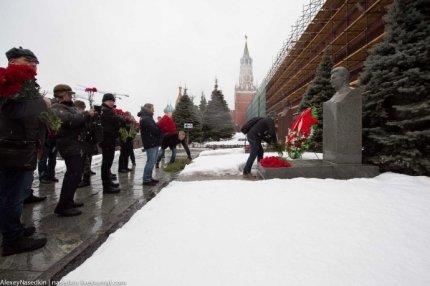 Утром 5 марта у Кремлевской стены на Красной площади, где похоронены видные деятели Советского Союза, выстроилась очередь россиян, которые решили возложить цветы на могилу Иосифа Сталина в день смерти диктатора.