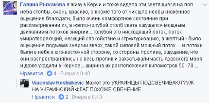 "В 22 часа 15 минут в городе Керчь (Крым) снято это свечение. Явление наблюдали в течение полутора часов", — написал он.