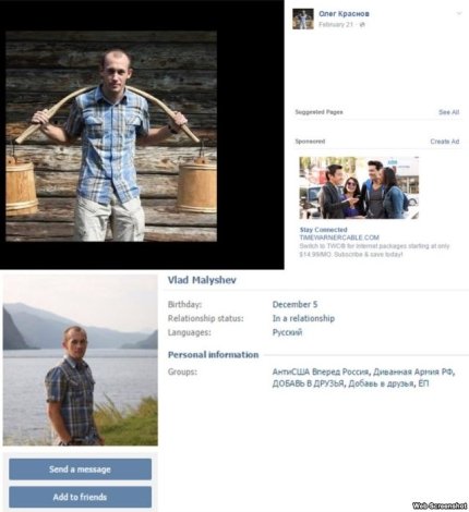 Страницы в социальных сетях двух администраторов этих сайтов — Олега Краснова (pohnews.org) и Влада Малышева (Whos whos.org). Оба пользователя (Олег и Владимир) используют фотографию одного и того же человека.