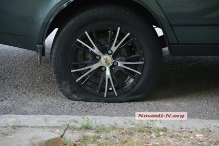 Выйдя из банка, он сел в машину, завел мотор и попытался тронуться с места. В этот момент к авто подскочили двое неизвестных, выстрелили в стекло правой задней двери, ударили ножом в правое заднее колесо и схватили с сидения сумку, в которой находилось 2 млн 600 тыс. гривен.