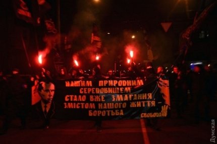 В Одессе 1 декабря провели факельное шествие, приуроченное ко дню рождения лидера украинских националистов Степана Бандеры.