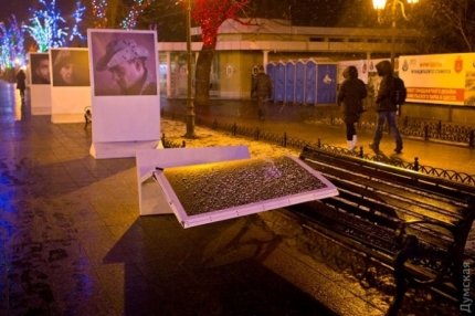 В Одессе неизвестные сломали один из стендов выставки о бойцах АТО.
