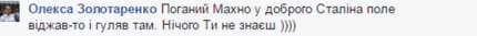 «Да...до оккупации там же все под махновское движение было стилизовано, теперь на Сталина переделали? Так при чем тогда название Гуляй-Поле? Там было раньше на входе написано что-то вроде - это штаб Первой Украинской Революционной Повстанческой Армии», - комментирует пользователь Александр Гуленко.