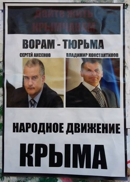 На снимке изображены портреты Аксенова и Константинова, которые немало помогли российской аннексии с лозунгом "Ворам - тюрьма".