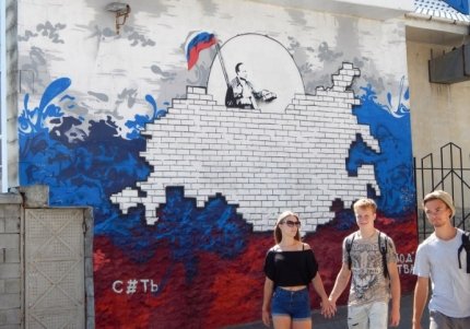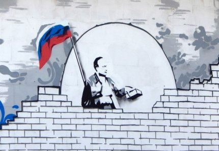 В оккупированном Россией Крыму, в городе Севастополь, появилось странное граффити, на котором президент РФ Владимир Путин замуровывает себя кирпичами и закрывает от России солнце.