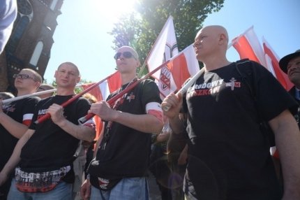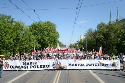 Одна из демонстраций организована радикальным "Национальным движением" Польши и проходит под лозунгом "Отваги тебе, Польша".