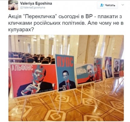 В Верховной Раде появились портреты соратников президента РФ Владимира Путина в рамках выставки политического плаката.