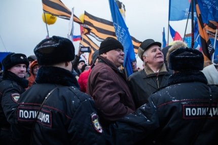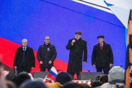 На митинге выступил одиозный лидер ЛДПР Владимир Жириновский, ранее призывавший к ядерному удару по Турции, лидер коммунистов РФ Геннадий Зюганов, а также депутат Госдумы, певец Иосиф Кобзон, недавно выступавший перед участниками бомбардировки Сирии.