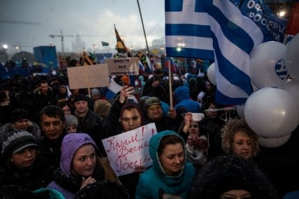 Так, на Васильевском спуске в Москве у стен Кремля собралось, по данным российской полиции, около 100 тысяч человек.