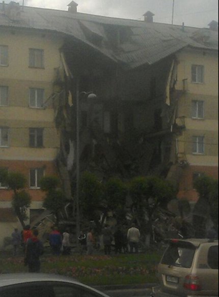 В российском городе Междуреченске, Кемеровской области, произошло обрушение дома - рухнули перекрытия в заселенном подъезде, с первого по пятый этаж.