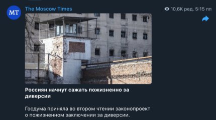 Госдума Российской Федерации окончательно приняла закон по уголовному наказанию в виде пожизненного заключения за "содействие диверсионной деятельности".