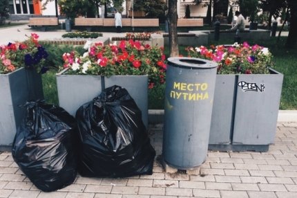 В России в Москве пользователи социальных сетей заметили урны для мусора, на которых написано: «Место Путина», таким образом москвичи показали свое отношение к российскому президенту Владимиру Путину.