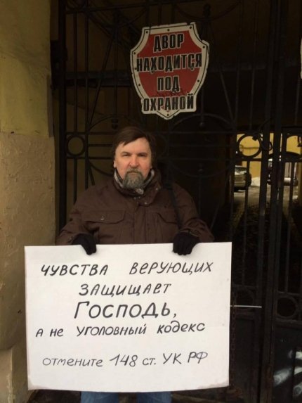 На плакатах, которые держали в руках протестующие, было написано: «Бог поругаем не бывает», «Чувства верующих защищает Господь, а не Уголовный кодекс» и «Чувства верующего оскорбить невозможно».