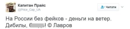 Пользователи соцсетей посмеялись над такой информации. Так, пользователь Капитан Прайс написал: "На России без фейков - деньги на ветер", и вспомнил знаменитую фразу главы МИД РФ Сергея Лаврова.