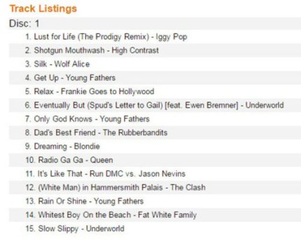 В списке присутствуют песни Игги Попа, Young Fathers, Blondie, Queen, The Clash и других.