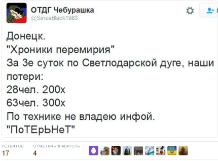 В сети появились данные о серьезных потерях боевиков ДНР за время противостояния на Светлодарской дуге.