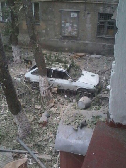 На видео запечатлены разрушения в жилом доме с обратной стороны продуктового магазина "Танаис", предположительно в Петровском районе Донецка.