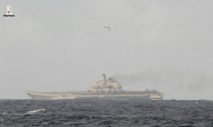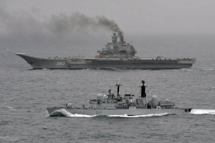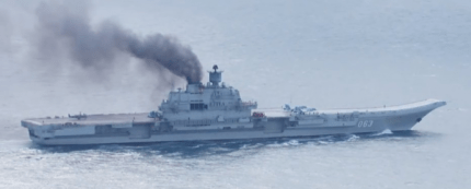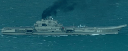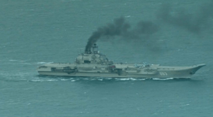 В сети появились новые фото единственного российского авианосца «Адмирал Кузнецов», который вдоль берегов Европы направляется к Сирии, оставляя за собой дымный след.