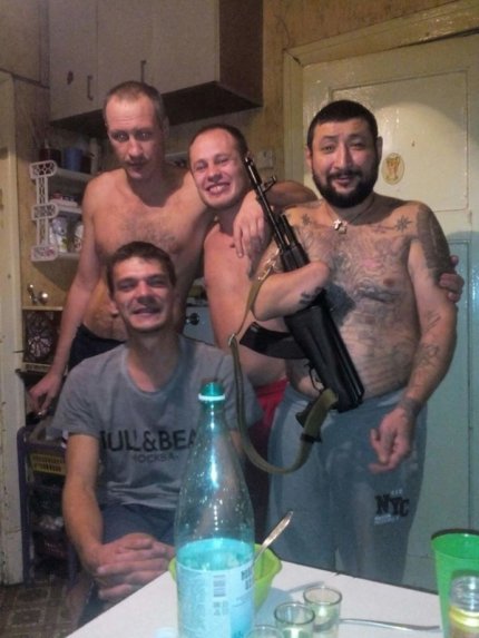 Российский таджик "Кедр" с собутыльниками. Фото: Facebook