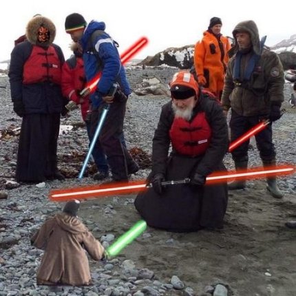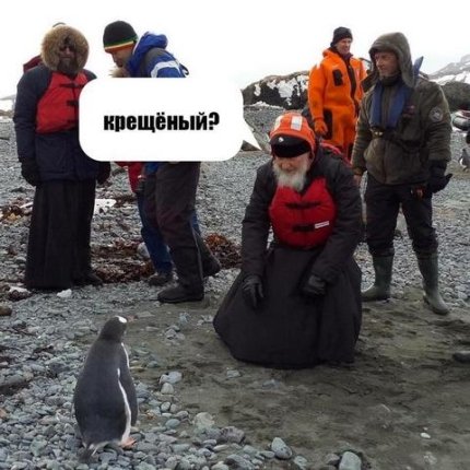 Патриарх Кирилл встретился с пингвинами в Антарктиде, и сегодня это активно обсуждают. Интернет-пользователи нарисовали десятки фотожаб на главный снимок с этой исторической встречи. Вот лучшие пародии: