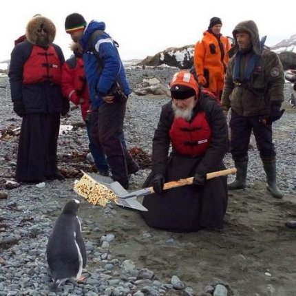 В сети появились веселые картинки встречи патриарха Кирилла с пингвинами.