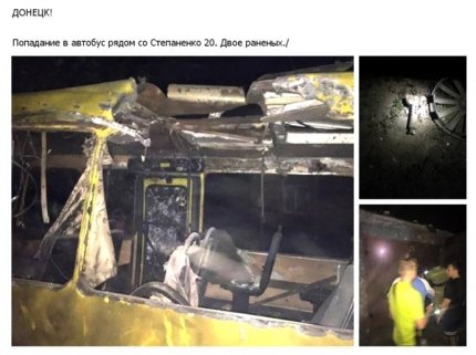 «При этом на фото, распространенных в СМИ оккупированного Донецка, мы видим совсем другое - автобус, который, вероятно, спокойно стоял на улице Степаненко, возле дома №20, был поражен вертикальным прилетом», - отмечают в СЦКК.