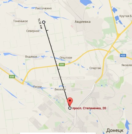 4. Хвостовик 82 мм мины, оставшийся на месте происшествия, и который задокументировали местные жители, и угол поражения, очевидно, указывает на то, что расстояние, с которого была проведена очередная кровавая провокация, составляет около 2 км. А учитывая направление обстрела, указанное в «источниках», есть все основания утверждать, что обстрел велся как раз с северо-западных окраин оккупированного Донецка, где боевики сосредоточили не одну минометную установку.