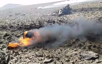 В сети опубликованы фотографии с обломками военного самолета МиГ-23, который рухнул на юго-западе Дамаска.