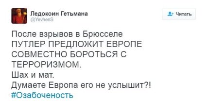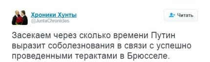 Пользователи соцсетей усматривают в бельгийских терактах российский след и предполагают, что в скором времени президент России Владимир Путин может предложить Европе помощь в борьбе с терроризмом.